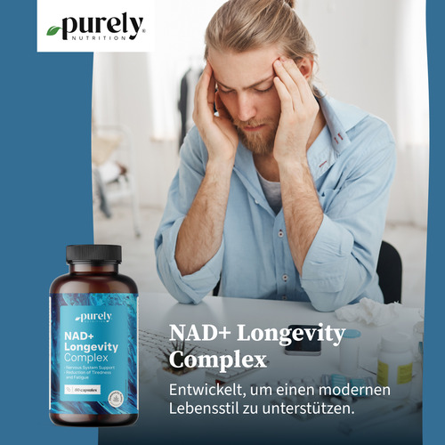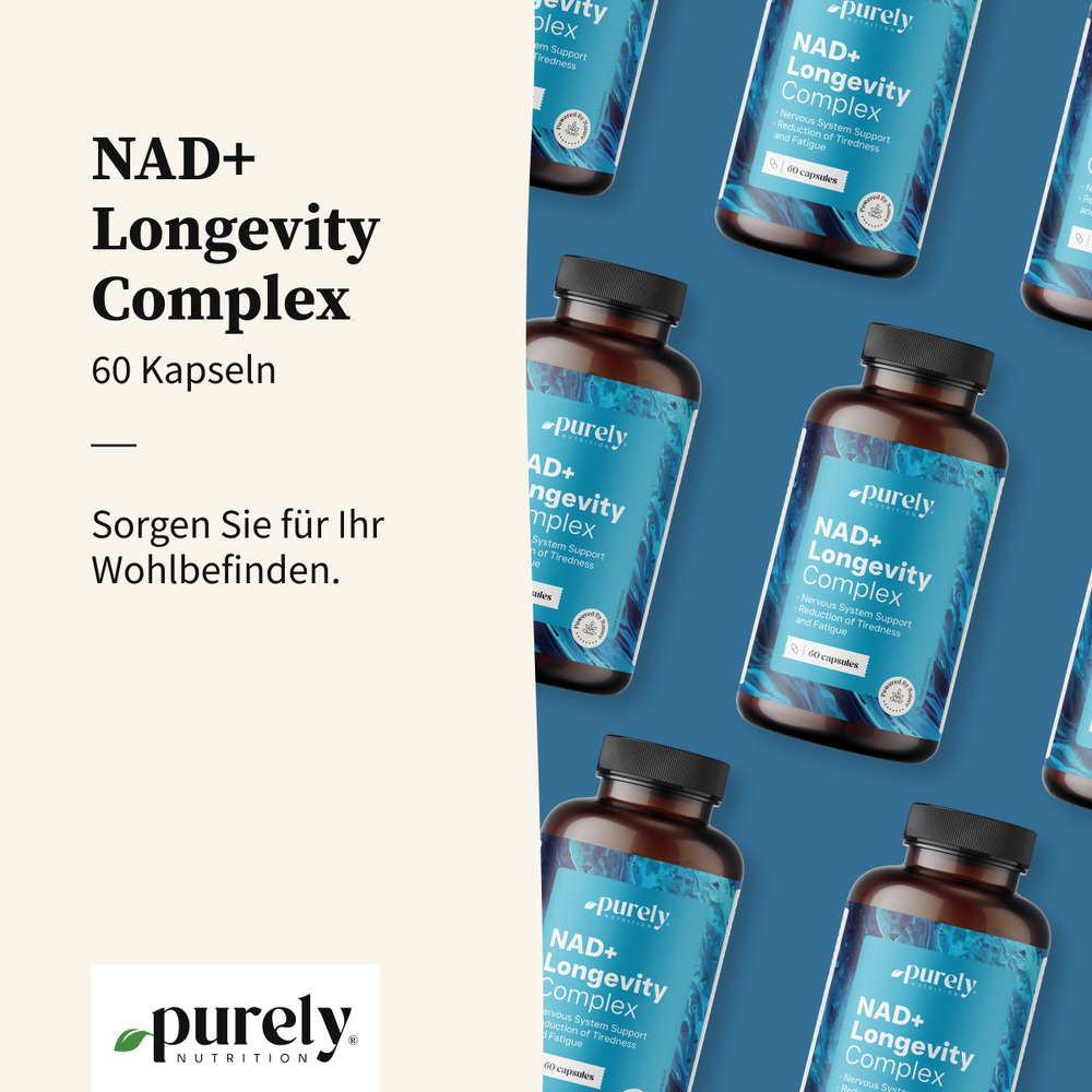 Alle Zutaten im außergewöhnlichen NAD+ Longevity Complex sind sorgfältig ausgewählt, um verschiedene Aspekte der Unterstützung der körperlichen Vitalität abzudecken. Die Formel wurde entwickelt, um alles zu kombinieren, was eine ausgewogene Ergänzung der Ernährung für jeden bietet, der Unterstützung für seinen aktiven Lebensstil sucht.