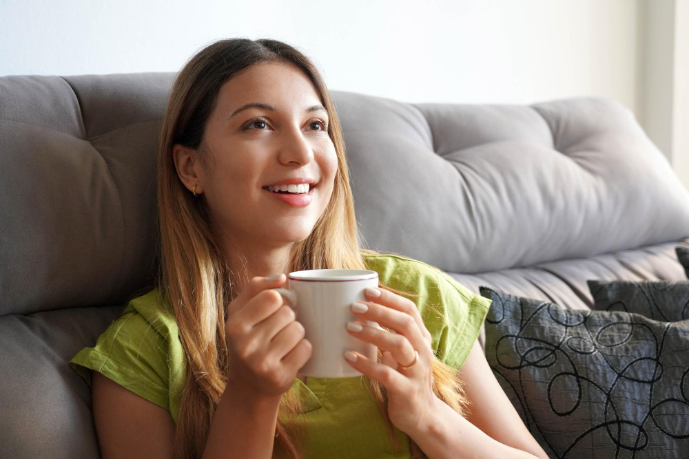 Es wirkt beruhigend, aufgrund der Art und Weise, wie wir es in unseren Tag integrieren. Wenn wir es genießen, nehmen wir uns einen Moment nur für uns und genießen ein ausgezeichnetes Getränk. Es ist auch eine hervorragende Alternative zu Ihrer morgendlichen Tasse Kaffee - im Vergleich zu Koffein aus Kaffee wirkt es beruhigend und erhält Ihre Konzentration den ganzen Tag über aufrecht.